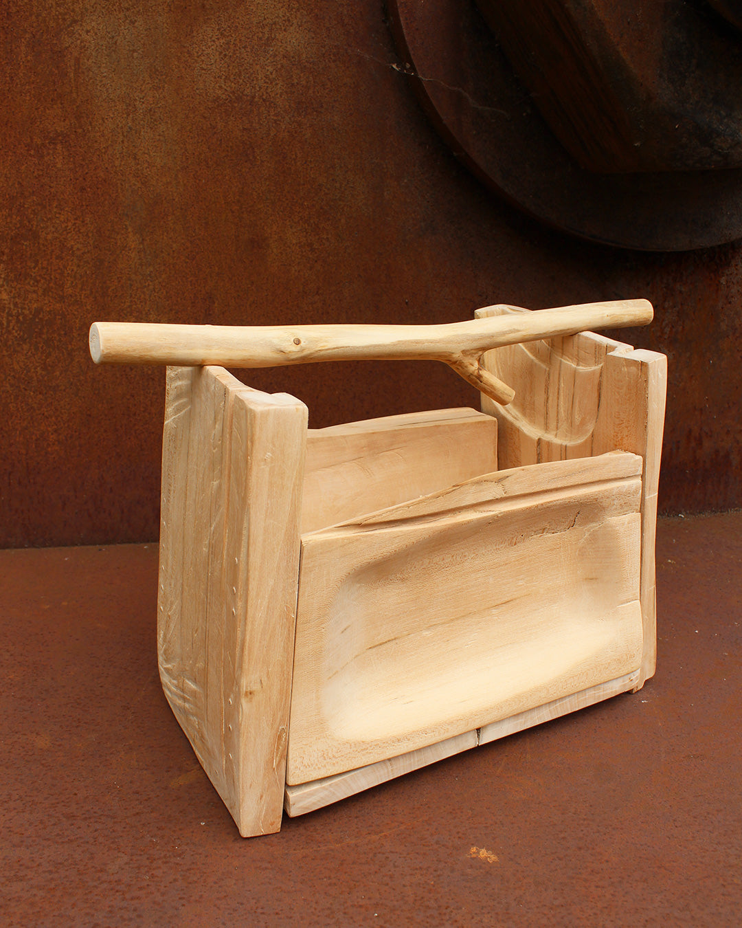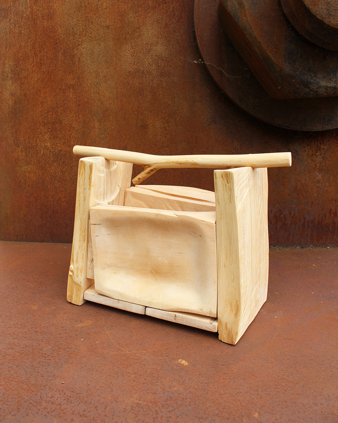 Made from offcuts from another build, this small carry box has some really interesting natural colours to it, also features some deep slots from where the stump was originally chainsawed into parts.